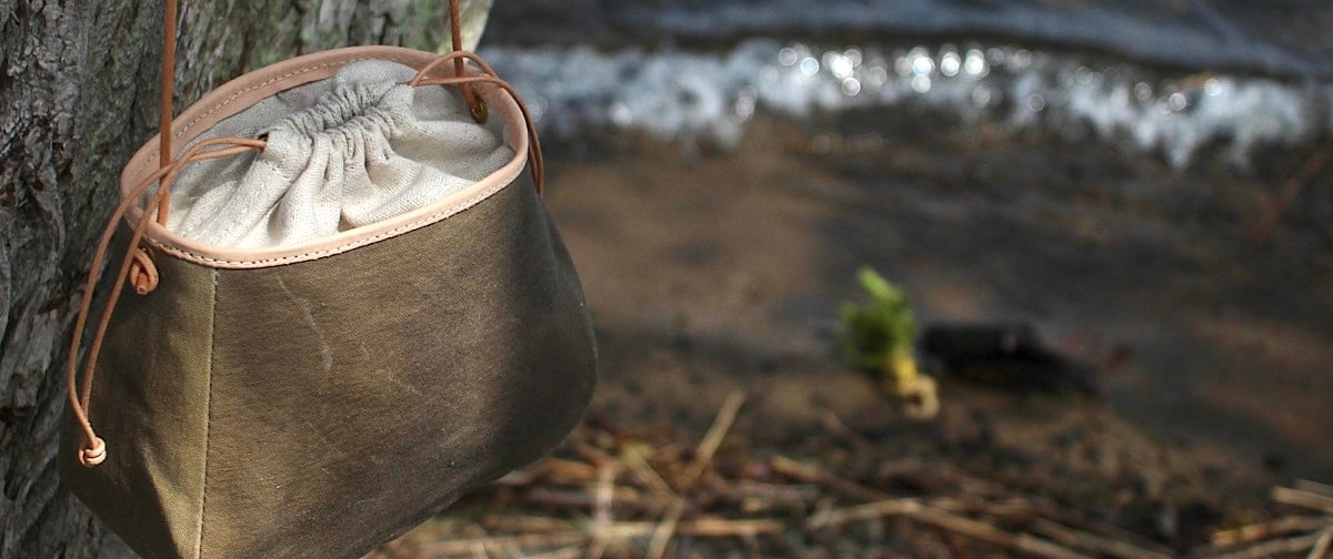 4箇所にタックが入った巾着バッグです。 スイス軍で馬の餌やり用に使われていたバッグをモチーフに巾着バッグを制作しました。 服のディテールで用いられる「タック」をヒントに前後2箇所ずつにタックを入れる事で蝋引きした硬い生地でも開口部が絞れるようにデザインしました。 また、持ち手には蝋引きしたヌメ革、金具は真鍮、裏地はコットンリネンの生地とメイン素材の草木染めパラフィンキャンパスの素材感に合わせたものを用いました。 二つ折りor三つ折り財布と小物が少量入る少量の荷物でのお出かけに丁度良い容量です。 ——————————————— 【素材】 本体生地:帆布(草木染め蝋引き加工) 持ち手:革 ——————————————— 【サイズ】 サイズ:約20㎝×約15㎝×約13㎝ (高さ×横幅×マチ) ※底が楕円形の為、横幅、マチは底で最も幅が広い部分を測定しています。 持ち手高さ:約20㎝ ——————————————— 【草木染め素材】 ベージュ: 紅茶染め グリーンカーキ : ヤマモモ 鉄媒染 藤色 : 五倍子 鉄媒染 ——————————————— 【注意点】 ・基本的にご注文後の制作となり、お届けまで3週間程度かかります ・天然素材を用いた手染めの商品のため、染め上がりに個体差がございます。 ・蝋引き加工している為、高温の場所に放置しておくと蝋が溶けてシミ出て生地が柔らかくなる場合がありますのでご注意ください。